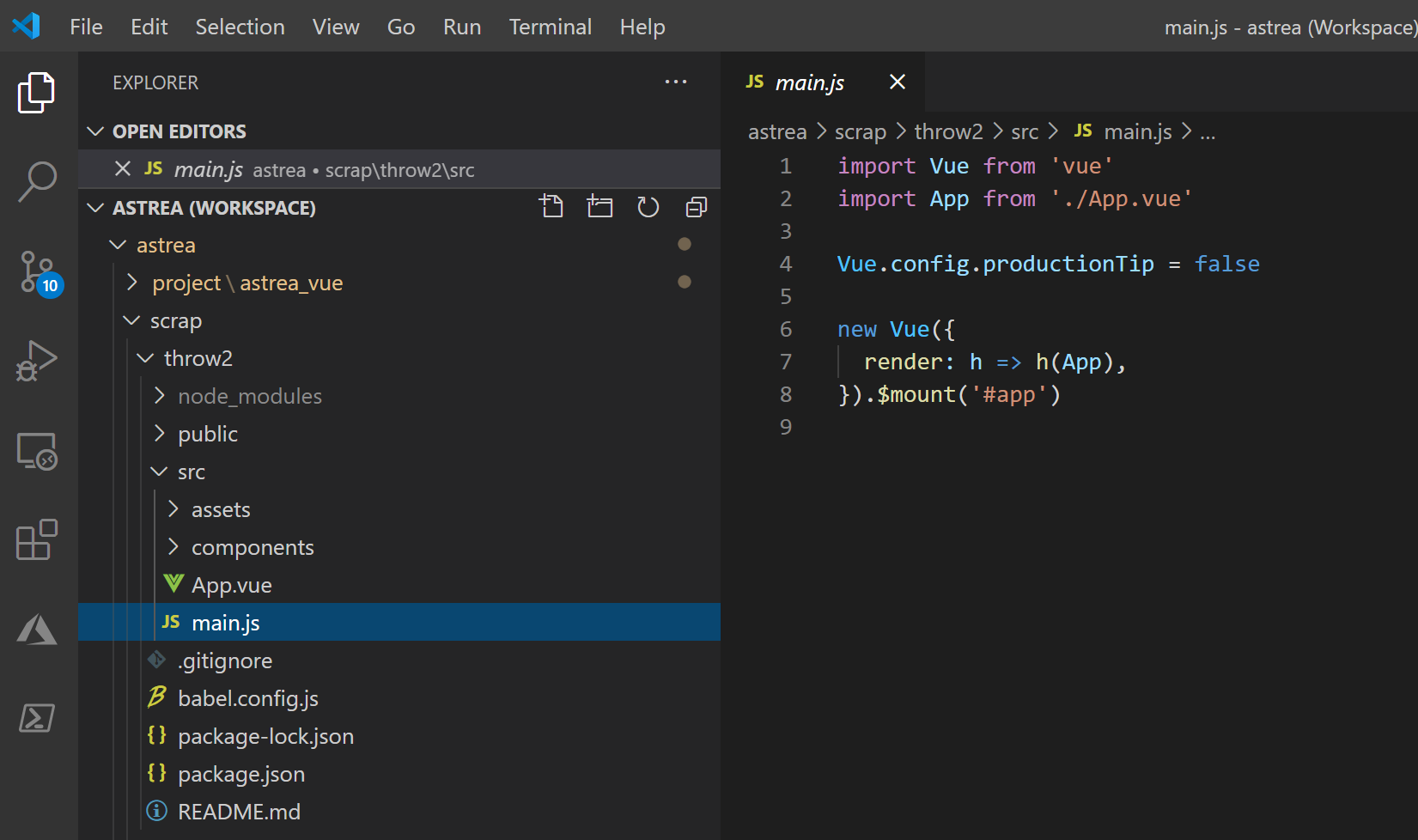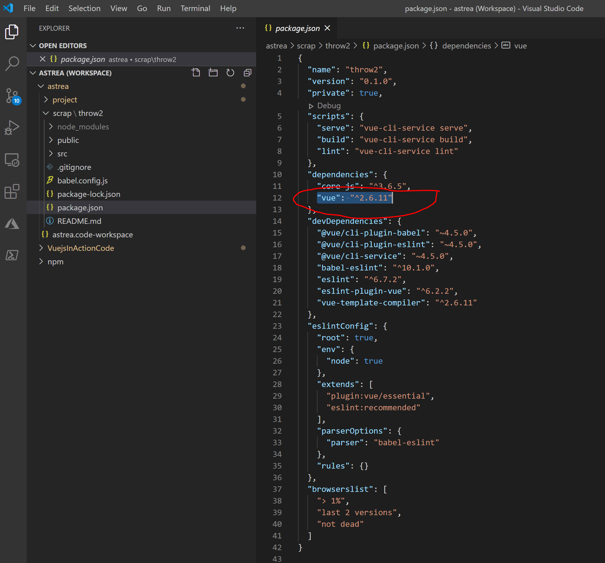 This exemplifies creating a Vue project called throw2: