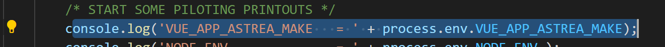 To remedy this, Vue.js allows specifying Vue.js environment variables which Webpack will replace by inlining their values wherever they appear in the code. Thus, the bundles run in the browser will involve modified code where environment variable values have been already resolved.